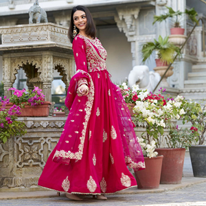 Büyüleyici vichitra ipek işlemeli elbisesi ile payetler net dupatta ve dantel detaylandırma dikişli parti tam pamuk ile set giymek
